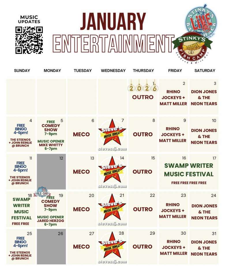 Click for the entire JANUARY MUSIC schedule at Stinky’s.