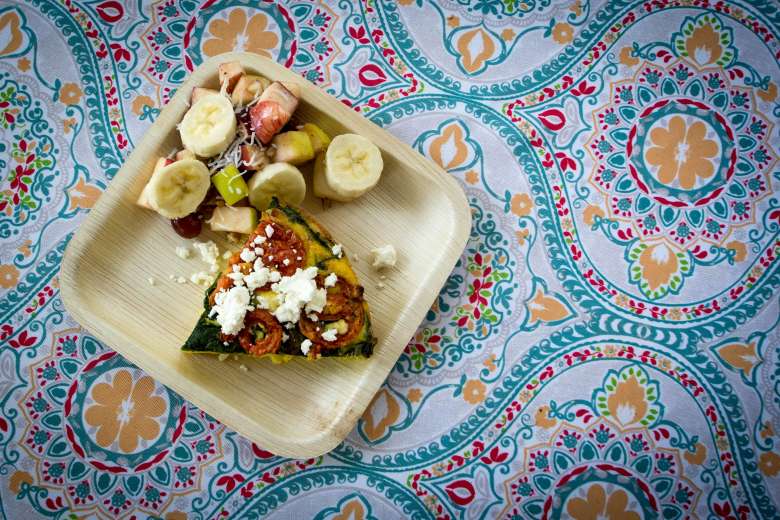 The breakfast menu is quite varied and selections include a Quiche of The Day, Biscuits and Gravy, Old Fashioned Oatmeal, French Toast, Hibiscus Wonder Cookie, Cinnamon Roll, Croissants, Bagels and Scones. Our favorites were the Frittata of The Day (an Italian-style baked omelet) and the Multi-Grain Pancakes (VERY substantial pancakes with your choice of blueberries, pecans, chocolate chips and bananas). Smoothies are also on the menu along with a choice of coffees, hot or cold tea, and milk.