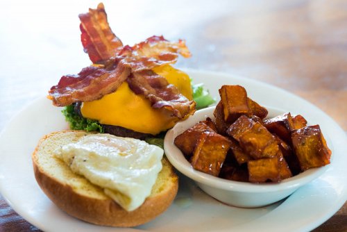 Still, I do like to give my arteries a jolt about once a week by eating a thick, juice running down my hands, fist-full of burger. And whether it’s on top of a red enchilada or Local Catch’s new Double Burger with bacon, a fried egg ups the ante. Pair it with Grayton Beer Company’s Founder’s Ale for real local flavor.